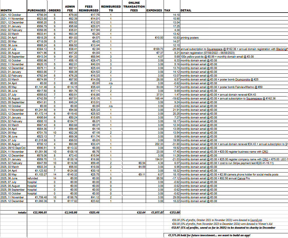 5% of our income after expenses goes to charity and all other income is being held for future investment. The dream is to build an app with shop and chat functions all built in.